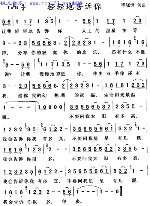 轻轻地告诉你_歌谱简谱_哆来咪123曲谱网