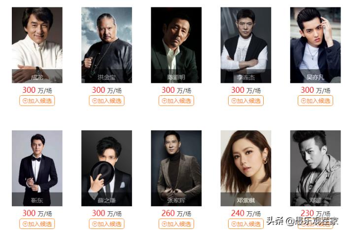 2020明星出场费报价明星演出商业演出席活动费用价格表