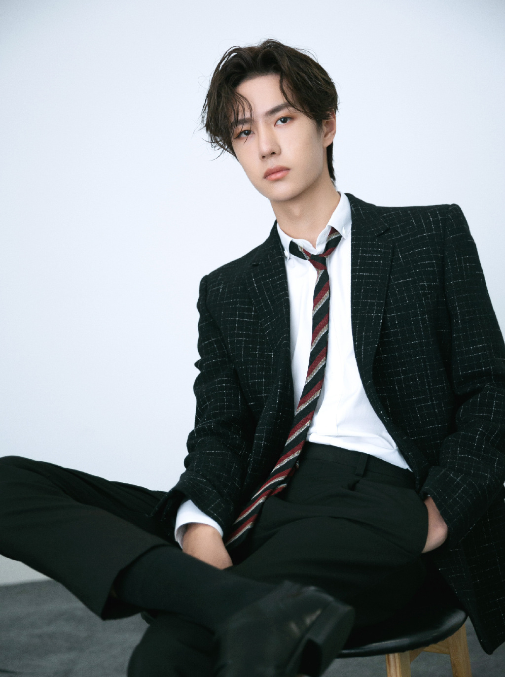 王一博格纹黑西装帅气写真图片47