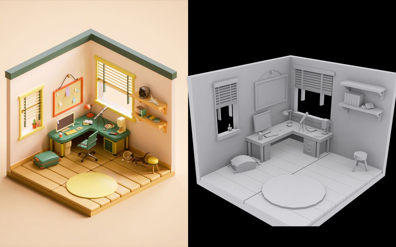 【3dmax场景建模】温馨室内小场景模型教学,新手不可错过的基础教学
