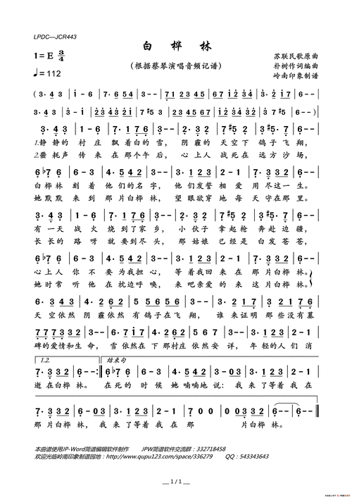 白桦林简谱-蔡琴演唱-岭南印象制作曲谱 - 51乐谱网