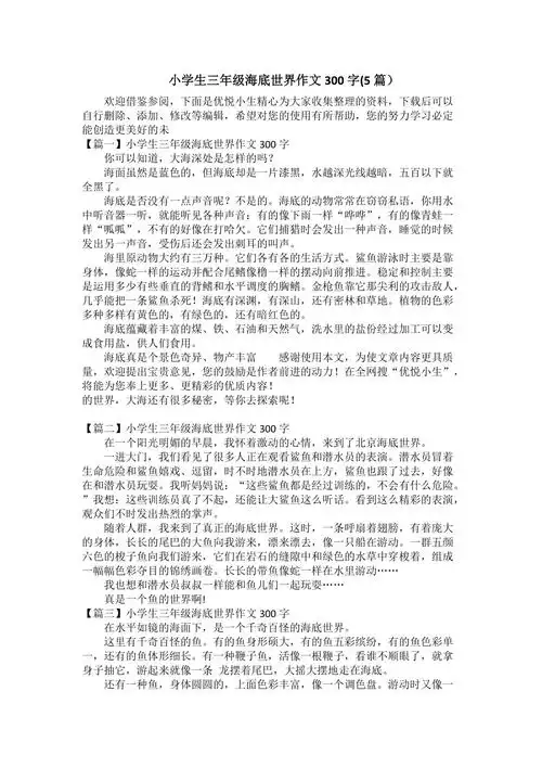 小学生三年级海底世界作文300字5篇