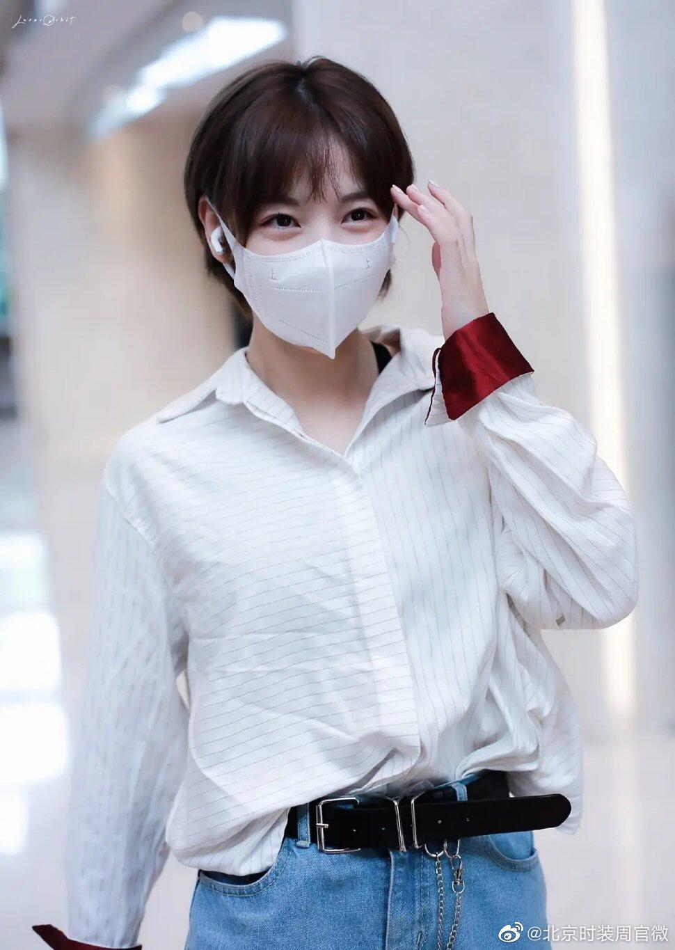 新鲜@硬糖少女303-赵粤 私服分享 竖条纹衬衫搭配宽松牛仔裤宛