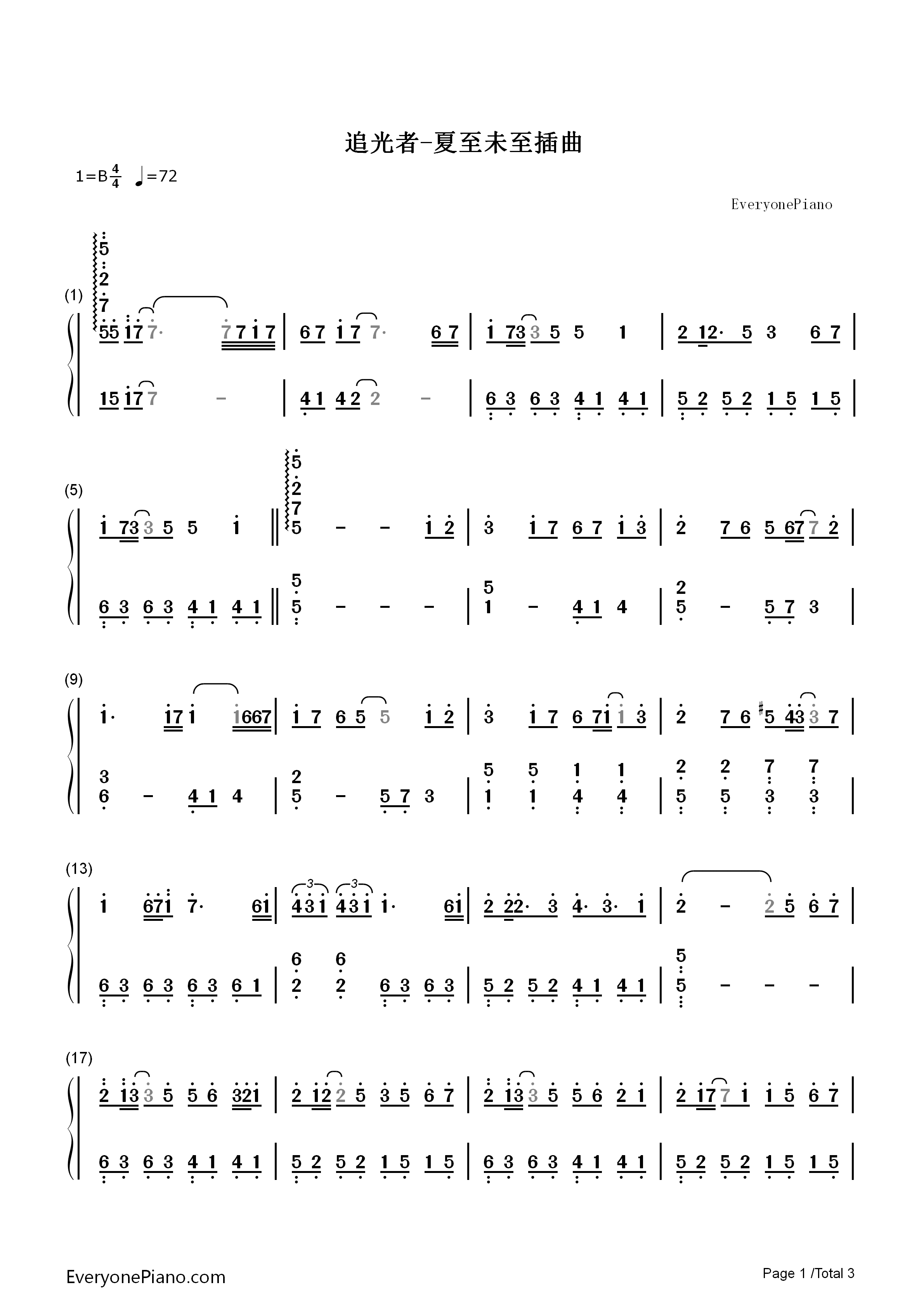 追光者 夏至未至插曲 双手数字 简谱 钢琴谱 带歌词.pdf 5页