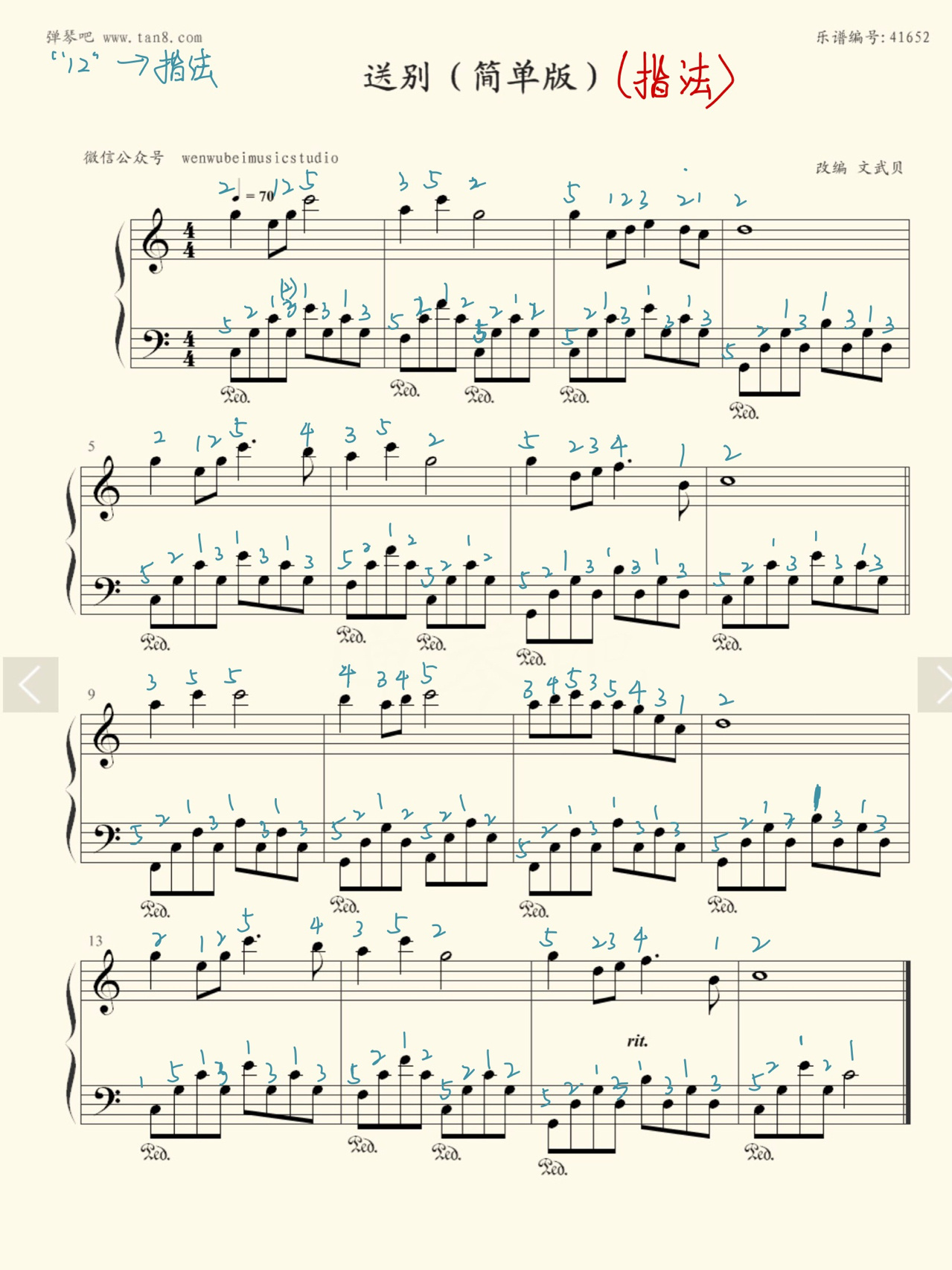送别简单版五线谱,已标注指法 送别,难度不大,左手基本伴奏,指法也
