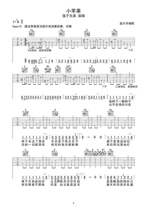 筷子兄弟《小苹果吉他谱》c调_指弹扫弦版