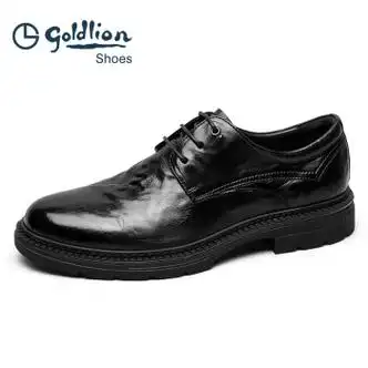 百丽牧貂旗舰店男土皮鞋牛皮2019新款黑色商务休闲职业工作上班鞋中年