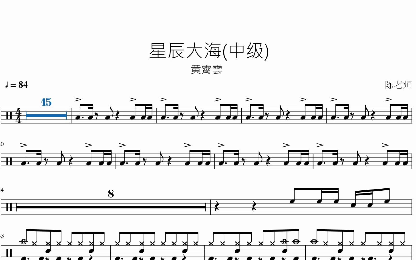 鼓谱:《星辰大海》(高还原)-黄霄云(附动态谱) - 架子鼓谱 - 打鼓谱