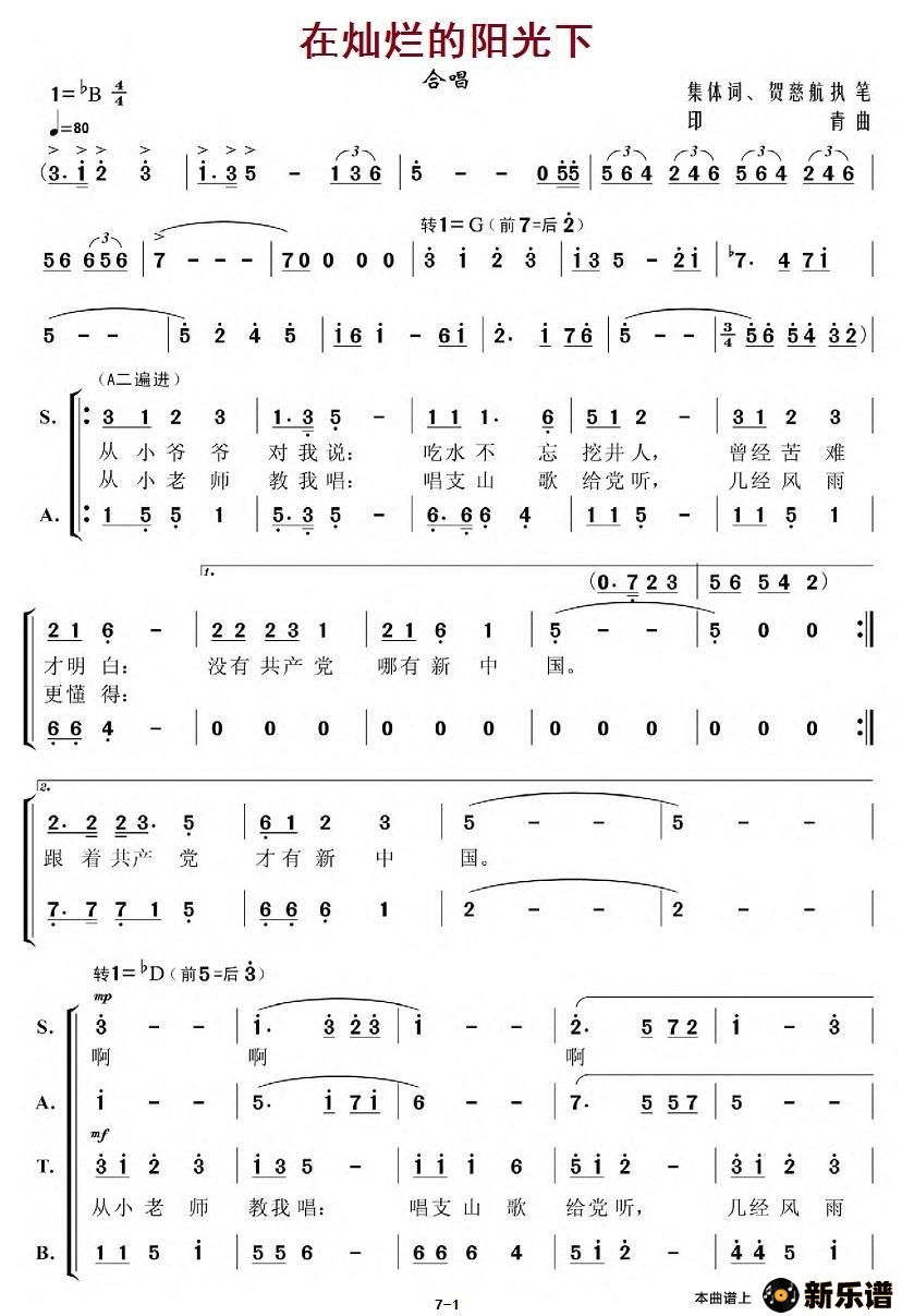 歌曲在灿烂的阳光下的简谱歌谱下载