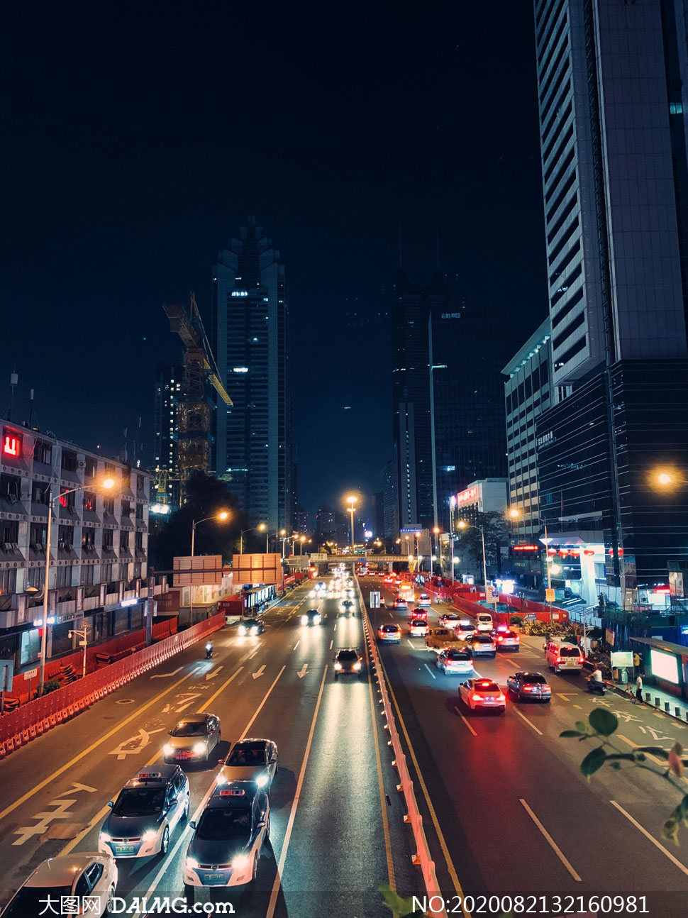 城市都市夜景风光车流橙白灯光马路来往车辆