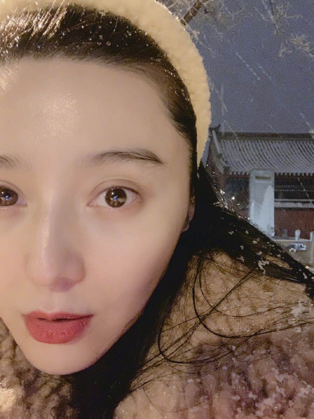 范冰冰晒素颜赏雪九宫格,皮肤白皙张口大笑"秀色可餐"