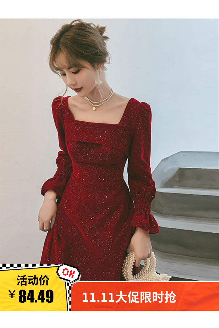 晚礼服女新款宴会气质优雅女士订婚礼服小个子秋冬晚礼服裙女新款气质