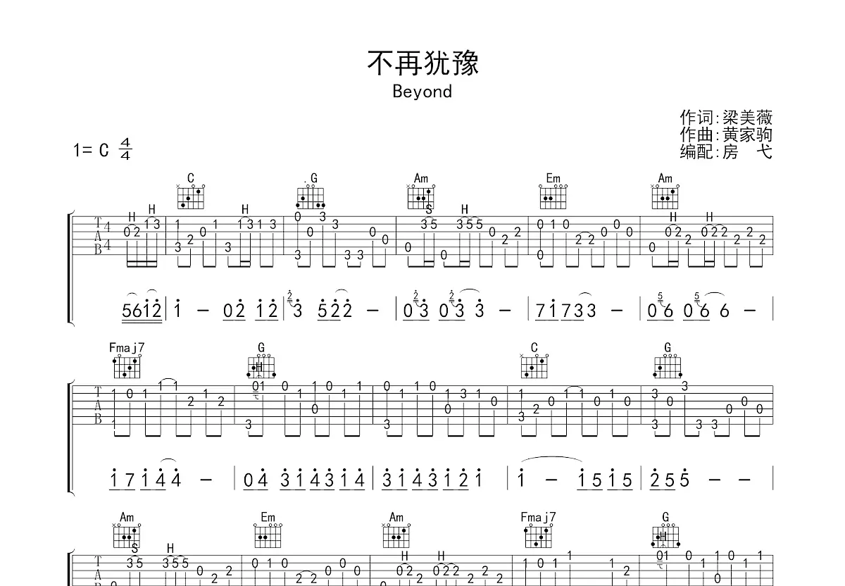 不再犹豫简谱-beyond演唱-beyond/beyond词曲1