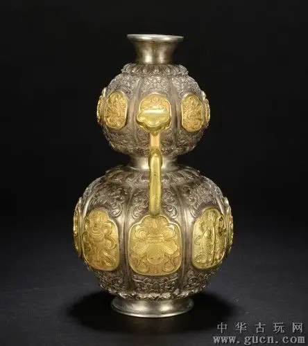 唐代银鎏金刻花葫芦瓶