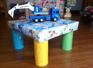 5,小桌子 如果家里有不用的木板,和奶粉罐一起就能做成简单又美观的小