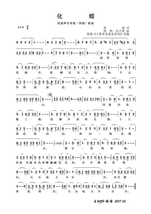民族声乐考级歌曲:化蝶简谱歌词