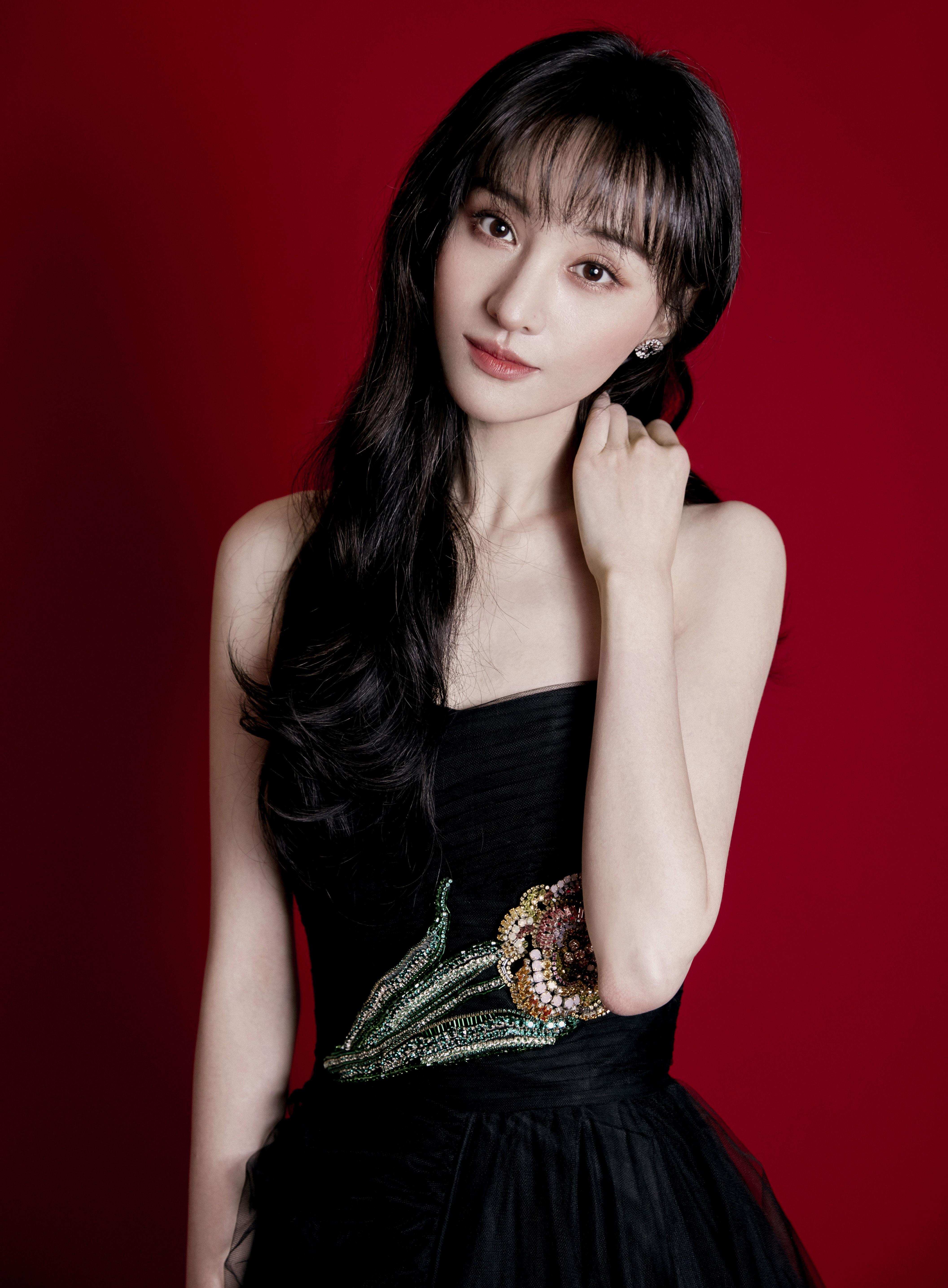 郑爽身着黑色抹胸纱裙,颜值回归!