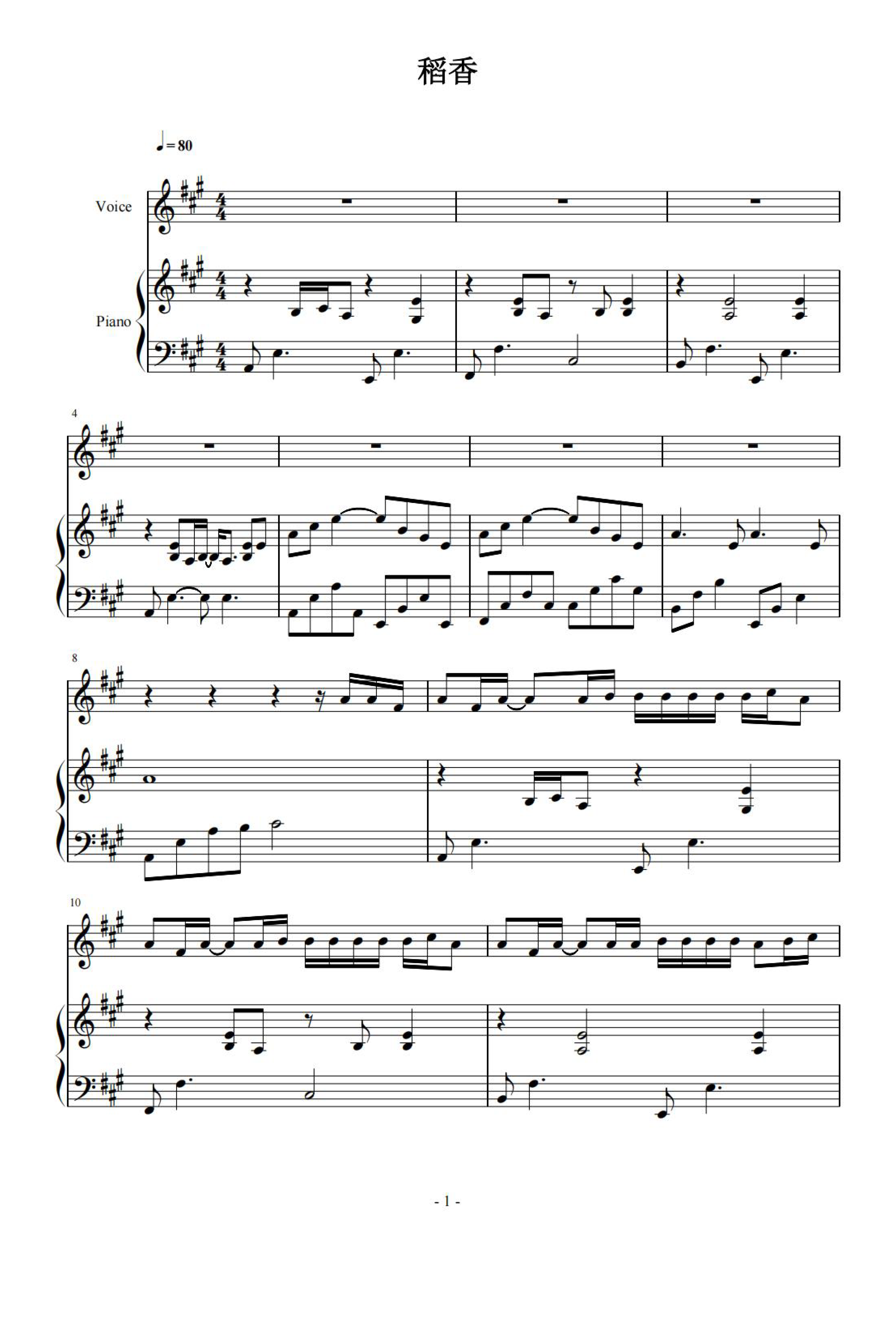 稻香钢琴谱周杰伦a调钢琴弹唱五线谱