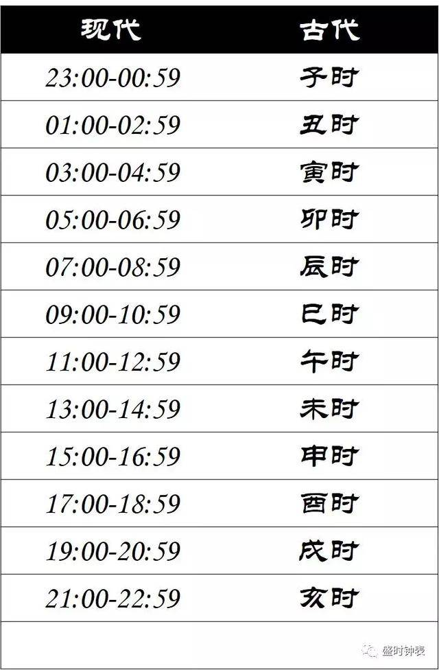 古代的十二时辰跟现代时间的对照表,这下就一目了然了吧?