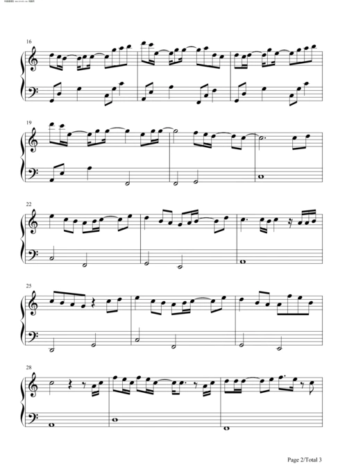 追光者--c调 -流行钢琴五线谱