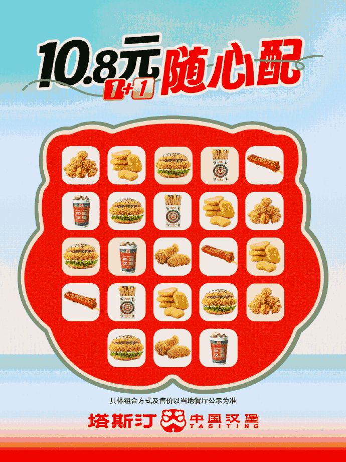 8店通用中国人的汉堡塔斯汀148元管饱套餐来了