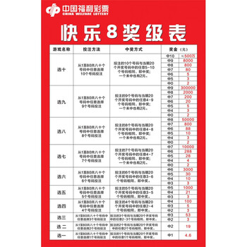 投注参考实用对照表彩票快乐8游戏玩法规则投注参考快8奖级表复式