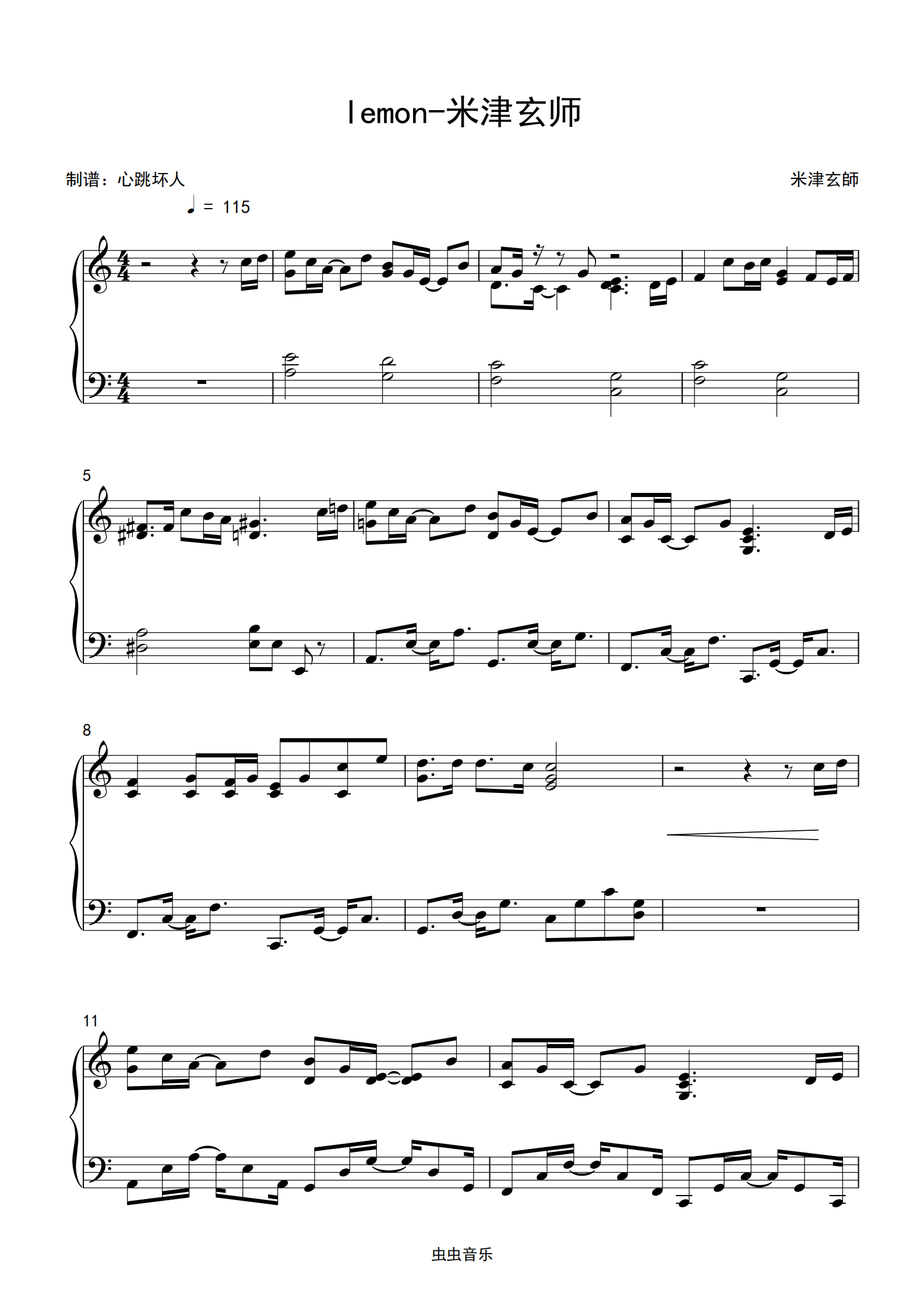 钢琴谱:lemon