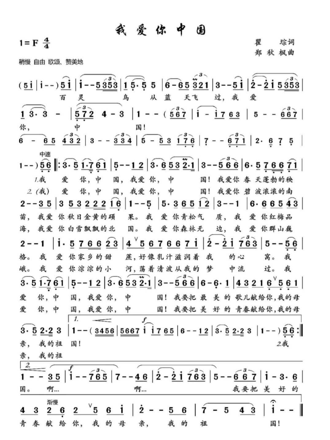 –《我爱你中国》声乐简谱f调92 省联考在即,最近很多艺考生通过