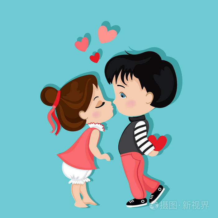 情人节那天.男孩和女孩接吻.爱卡
