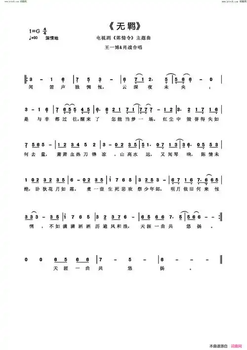 无羁电视剧《陈情令》主题曲简谱-王一博演唱-作曲:林海词曲1