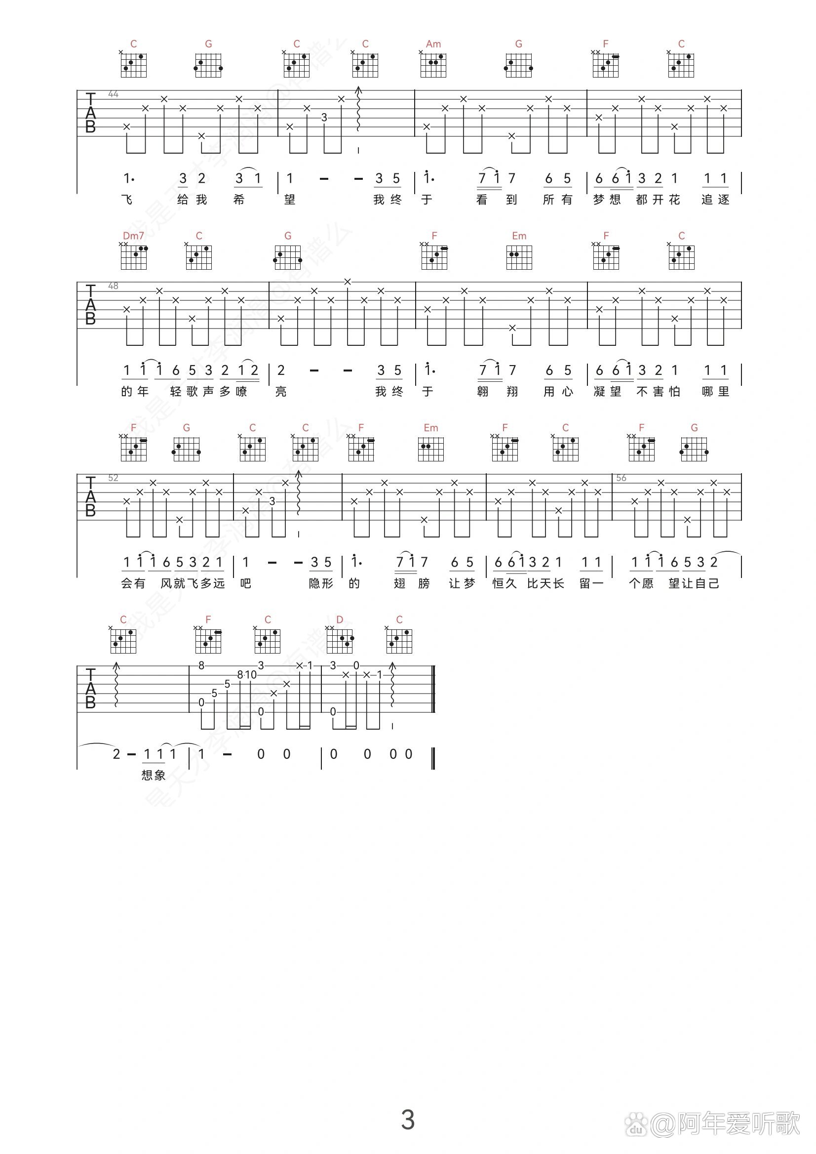 张韶涵《隐形的翅膀》吉他谱