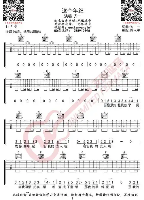 这个年纪齐一f调简易吉他谱