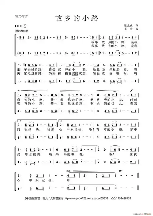 (传谱)查看更多>>(故乡的小路(二声部合唱)) / lovequpu传谱相关歌谱