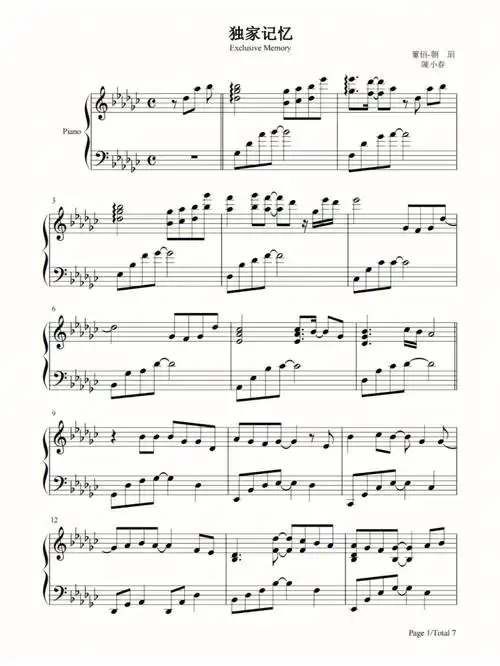 钢琴谱独家记忆