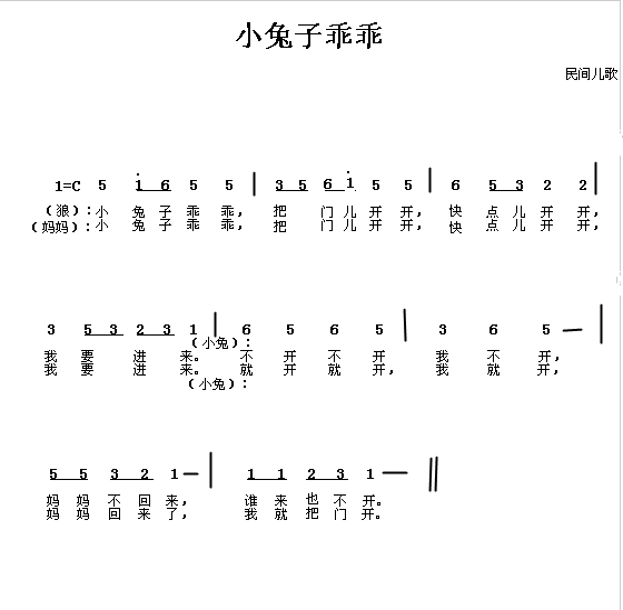 小兔乖乖_小兔乖乖简谱_小兔乖乖吉他谱_钢琴谱-查字典简谱网