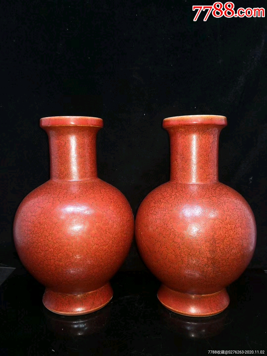 仿,清~橘皮季红釉花瓶一对,尺寸如图