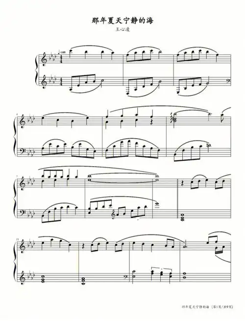 王心凌-那年夏天宁静的海 原版 钢琴双手简谱 钢琴谱 钢琴简谱