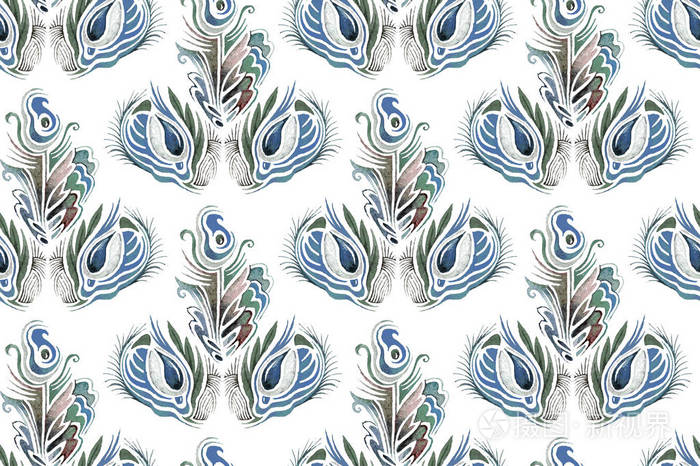 可爱的蓝色和白色图案.纺织品的夏天印刷品.手绘波浪饰品