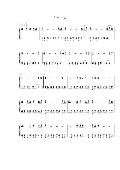 在水一方钢琴双手简谱