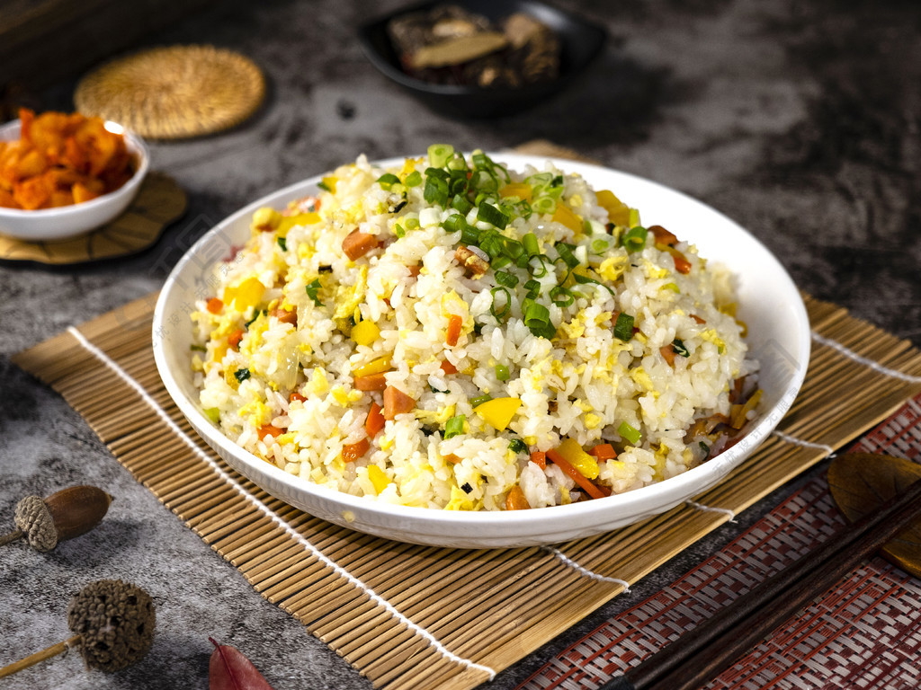 酱油火腿蛋炒饭火腿鸡蛋隔夜米饭葱花灵魂点睛