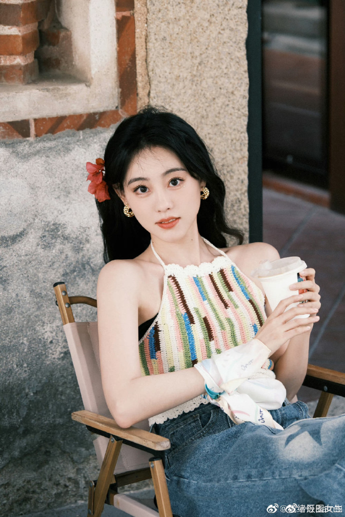 祝绪丹耳别红花随拍##祝绪丹彩色吊带随拍