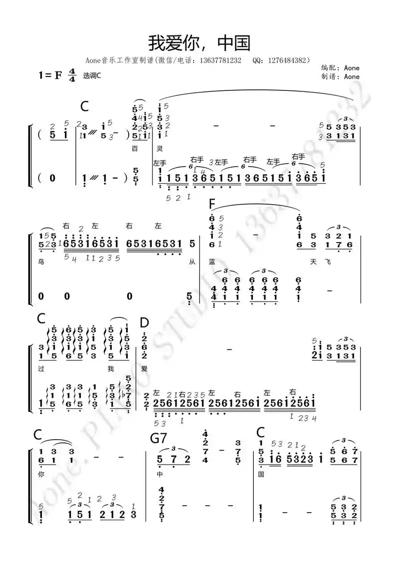 我爱你中国钢琴简谱c调