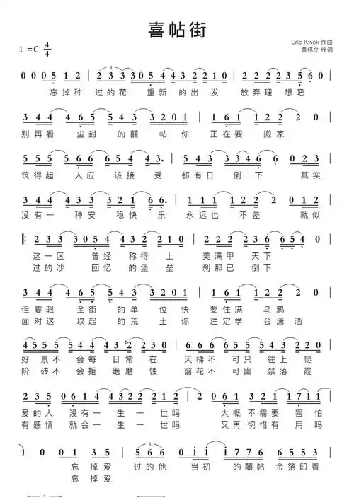 喜帖街_简谱_搜谱网