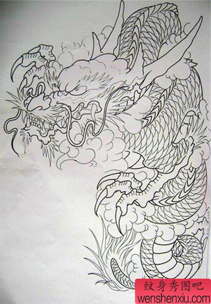 披肩龙手稿_纹身披肩龙手稿图案_披肩龙手稿线稿素材 - 纹身秀