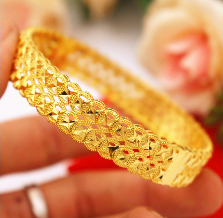 镀9999金手镯女仿真24k千足金手环手链女可节沙金首饰送戒指