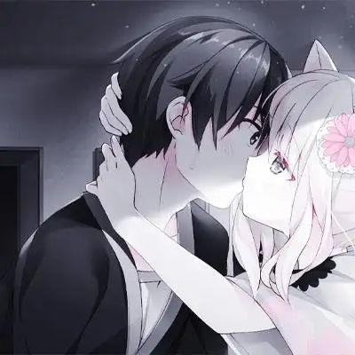 2020最新动漫接吻情头一人一半,动漫情头一男一女分开甜蜜款