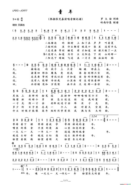 童年歌词简谱罗大佑