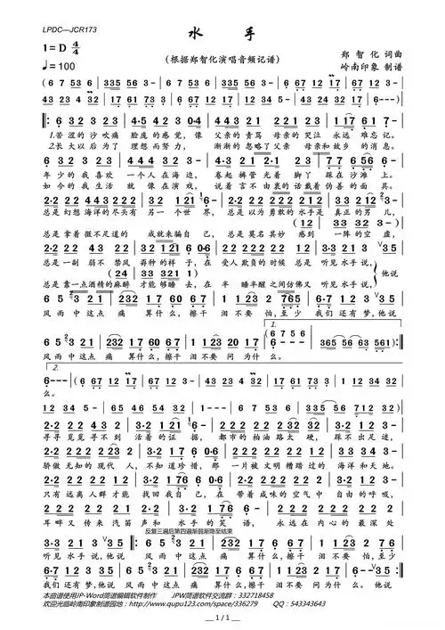 水手简谱歌词郑智化演唱岭南印象制谱