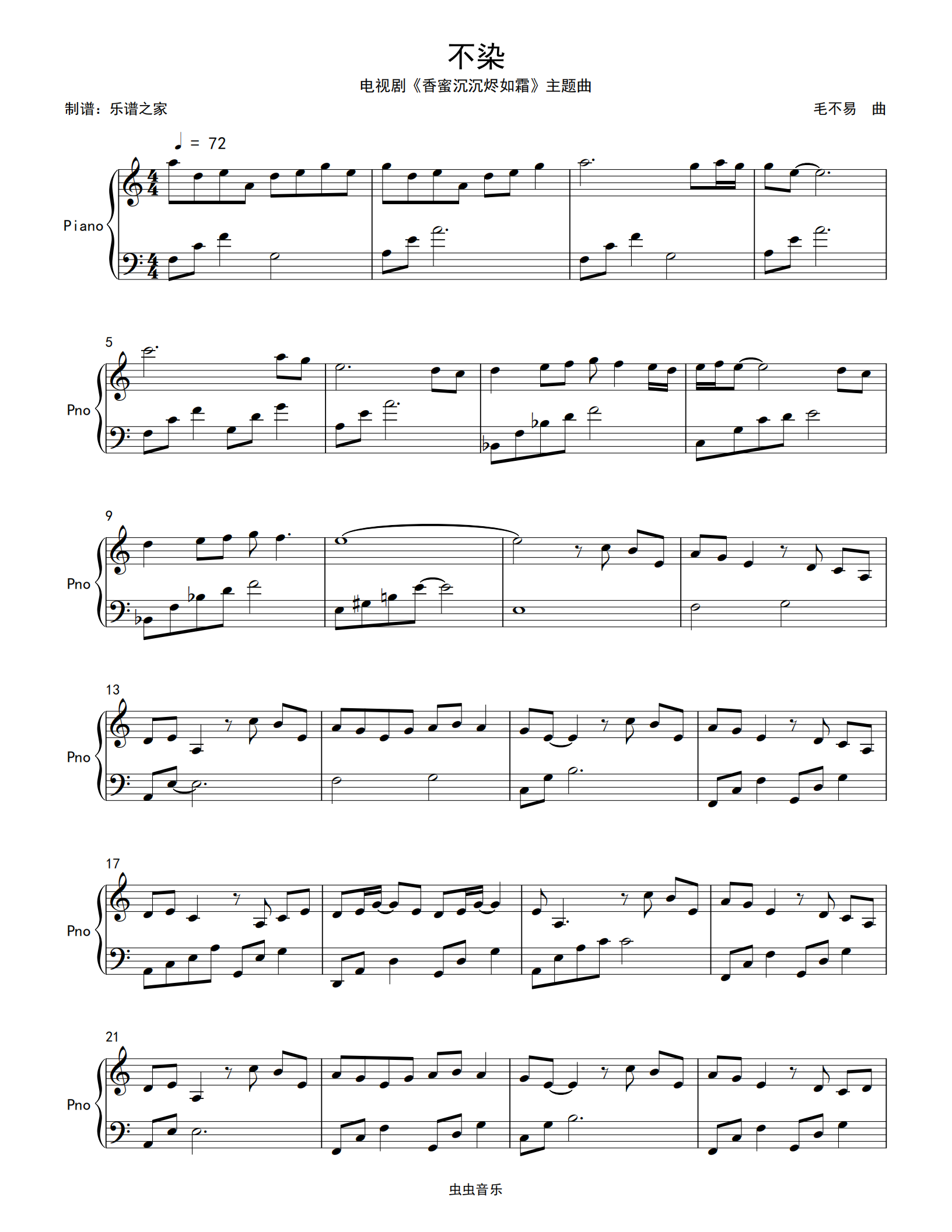 不染_毛不易_c调_流行钢琴双手简谱_钢琴谱|钢琴五线谱|钢琴简谱|钢琴