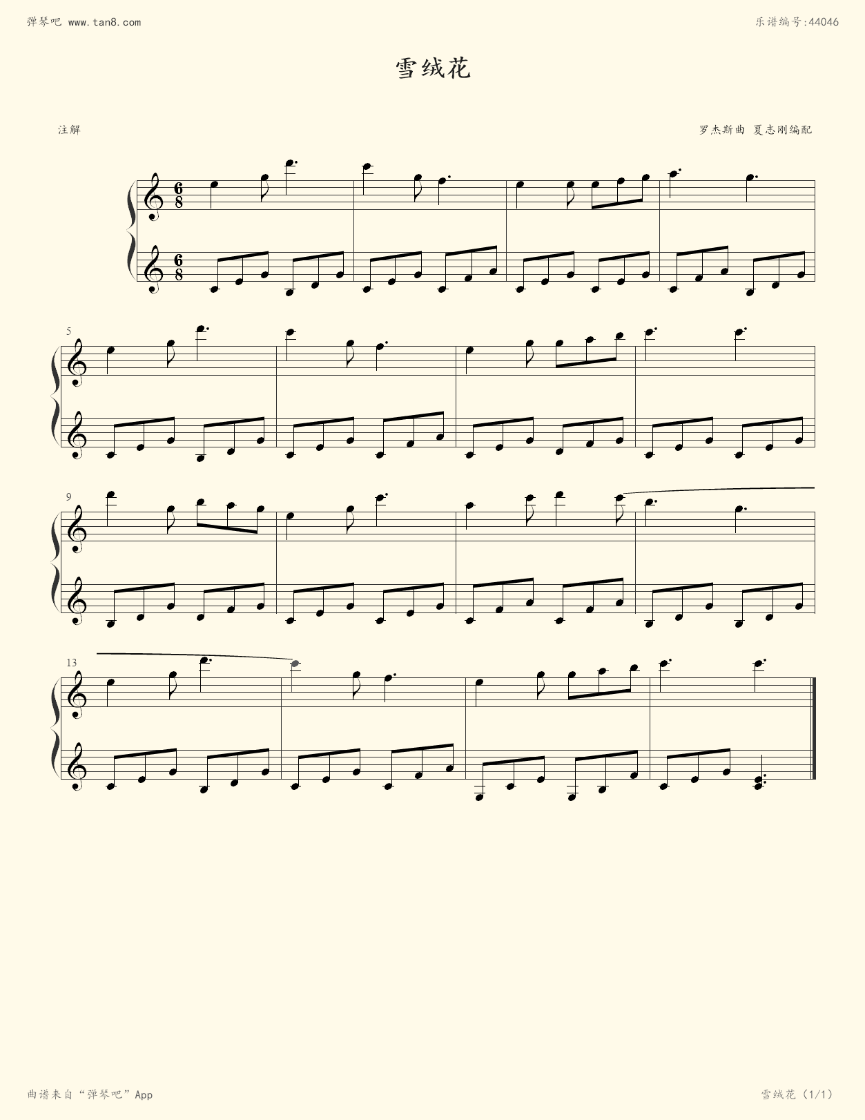 《雪绒花,钢琴谱》未知|弹吧|钢琴谱|吉他谱|钢琴曲|乐谱|五线谱|高清